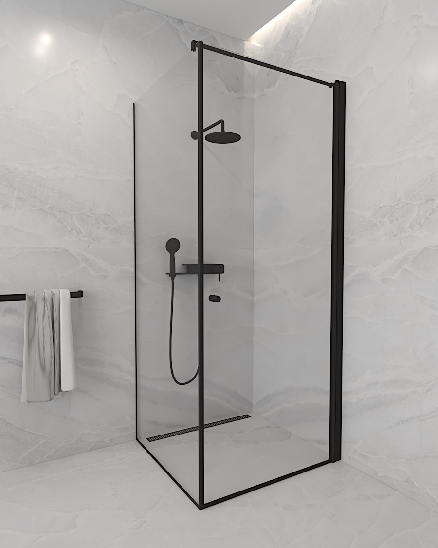 Lengvai montuojama ir eksploatuojama stačiakampė dušo kabina. Kai kabina nesinaudojama, galima dureles prilenkti prie sienos į vidų ar išorę. Šią dušo kabiną itin lengva valyti. Galimi nestandartiniai matmenys. Dušo kabina pagaminta iš saugausgrūdinto stiklo. Stiklas gali būti skaidrus, matinis, tonuotas įvairiais atspalviais arba raštuotas. Taip pat stiklas padengtas danga "greiti lašai", todėl kabiną net iki 90% lengviau valyti. Kabinos aukštis 1900mm.